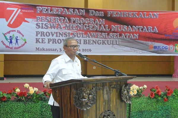 Program Siswa Mengenal Nusantara Sulawesi Selatan difasilitasi oleh 4 BUMN yaitu PT. Semen Tonasa, Perum Bulog, PT Perkebunan Nusantara XIV, Kawasan Industri Makassar (KIMA). Acara pelepasan dan penyambutan dilaksanakan di Gedung Perum Bulog Makassar, Kamis (4/8/2016), dihadiri oleh Wakil Gubernur Sulawesi Selatan, Agus Arifin Nu`mang didampingi oleh masing-masing Dirut PIC para BUMN yang bersinergi.