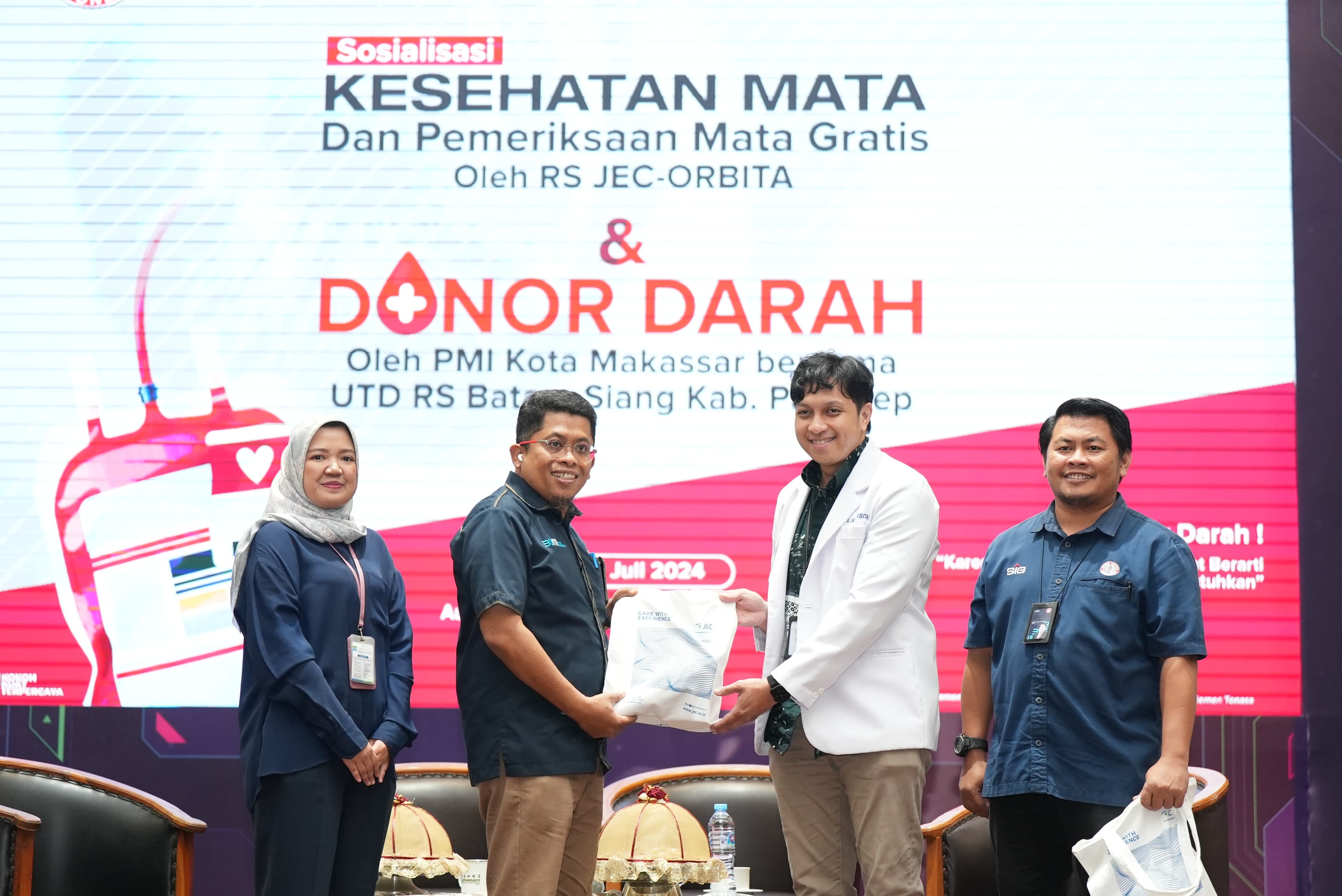 Para peserta sangat antusias pada kegiatan ini, dikarenakan selain kegiatan donor darah, juga dilaksanakan kegiatan sosialisasi kesehatan mata dan pemeriksaan mata gratis oleh RS JEC Orbita Makassar.