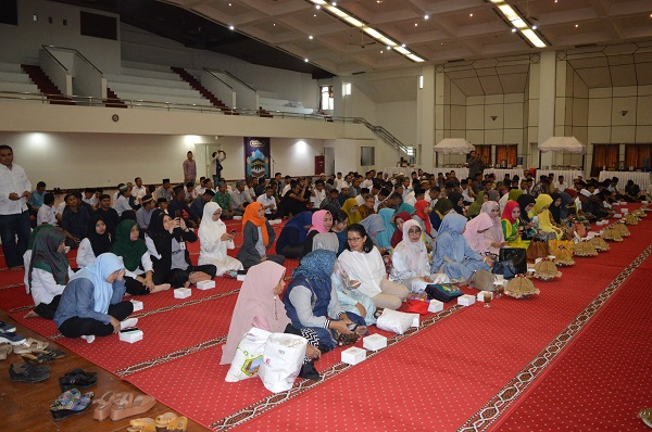 Acara dimulai Jam 17.40 Wita dengan diawali Pembacaan Alqur’an, Ceramah Agama dan Do’a jelang Buka puasa serta dirangkaikan dengan Sholat Maghrib berjamaah lalu Makan Malam bersama. (Humas.st/Saf)