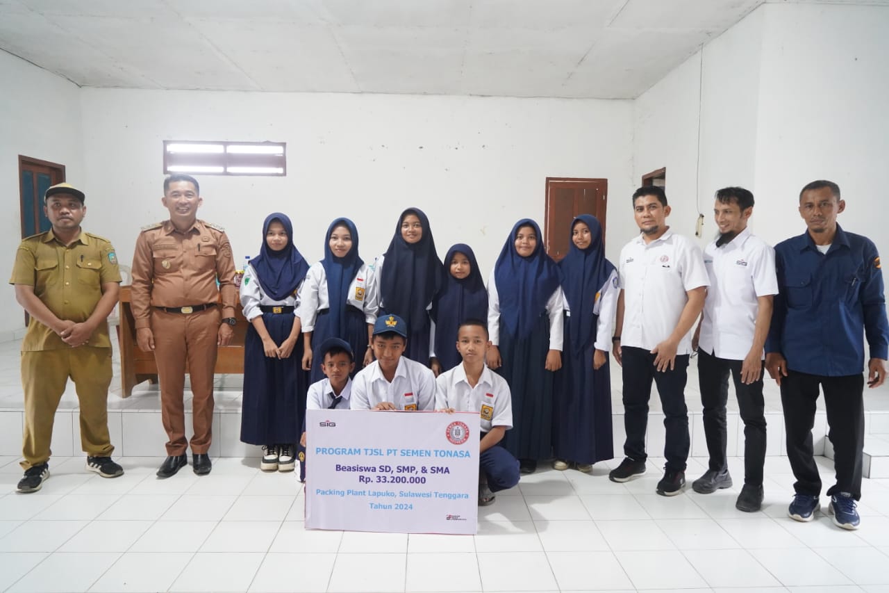 Tanggung Jawab Sosial dan Lingkungan (TJSL) PT Semen Tonasa menyerahkan bantuan beasiswa kepada siswa SD, SMP dan SMA untuk beberapa wilayah Packing Plant. Untuk Packing Plant Lapuko Kendari proses Penyerahannya dilaksanakan di Kantor Lurah Lapuko, Kecamatan Moramo, Kabupaten Konawe Selatan, Senin (29/7/24).