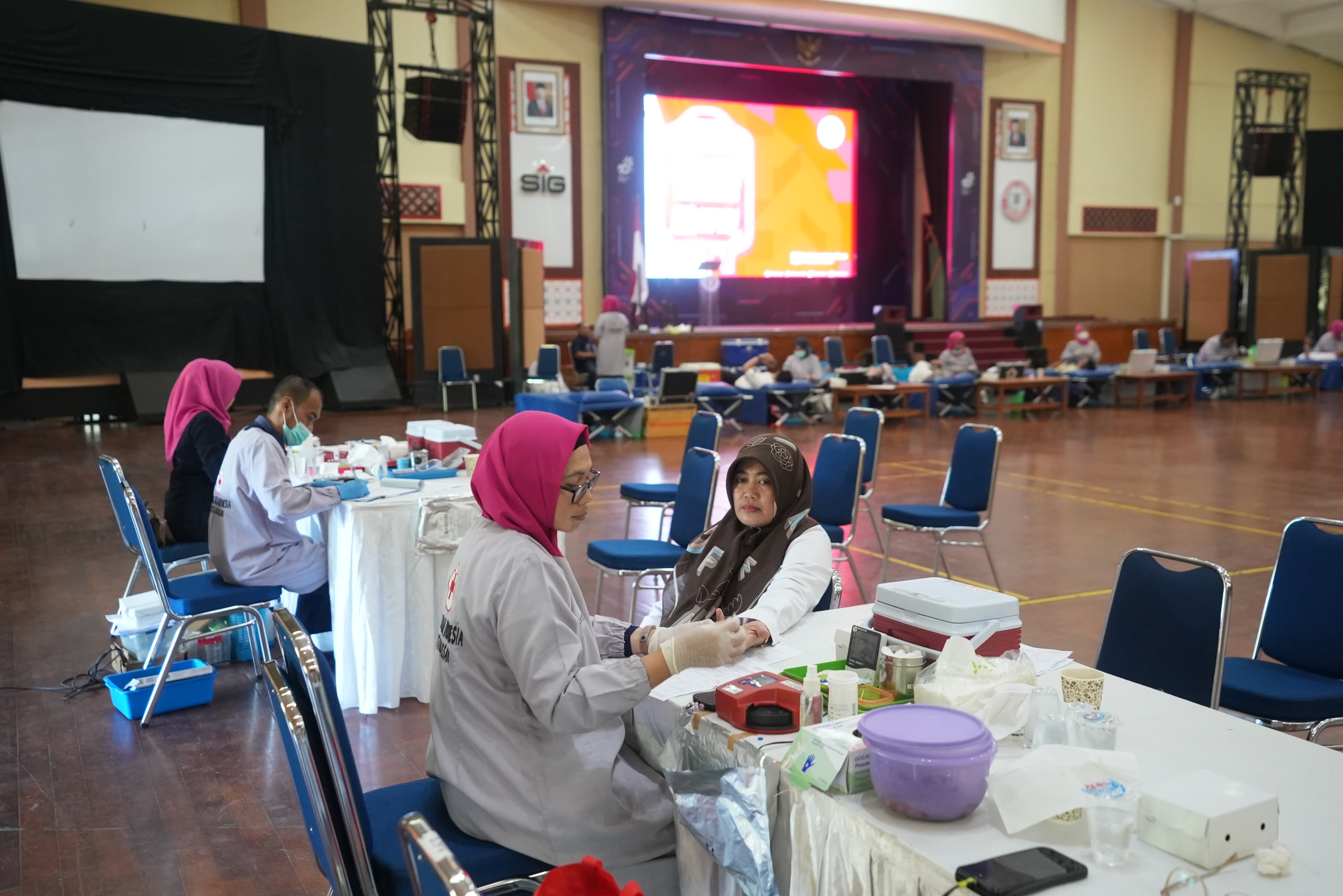 Kegiatan donor darah yang dimulai pukul 09.00 WITA dan berlangsung hingga siang hari ini mendapatkan antusiasme yang sangat tinggi dari para karyawan PT Semen Tonasa. Lebih dari 200 pendonor dengan sukarela menyumbangkan darahnya untuk membantu mereka yang membutuhkan.