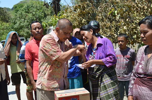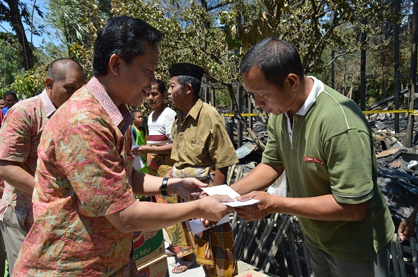 Bantuan berupa uang tunai dan sembako diserahkan langsung oleh Kepala Departemen Sekretaris Perusahaan Muh. Arifin, SH, Kepala Departemen CSR dan Umum Ferry Djufry, SE didampingi Kepala Biro PKBL Ir. Agustan disaksikan oleh Ketua Forum Desa Kalabbirang berserta masyarakat yang terkena musibah.