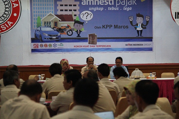 KPP Pratama Kab. Maros Sul-sel “Armadari memberikan sosialisasi (Tax Amnesty) diruang Aditorium lantai satu Kantor Pusat PT. Semen Tonasa Rabu (10/8/2016), turut hadir pada acara sosialisasi kali ini Direktur Keuangan H. Subhan, SE., Ak, MM. Kepala Departemen Keuangan Hj. Sulaiha dan Karyawan Eselon satu, dua, tiga serta perusahaan Afiliasi.