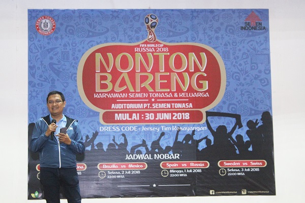 Tak terkecuali, manajemen perusahaan bersama keluarga besar karyawan dan karyawati perusahaan plat merah PT Semen Tonasa menggelar kegiatan nonton bareng piala dunia, bertempat diauditorium Kantor Pusat PT Semen Tonasa, Minggu (1/7/18).